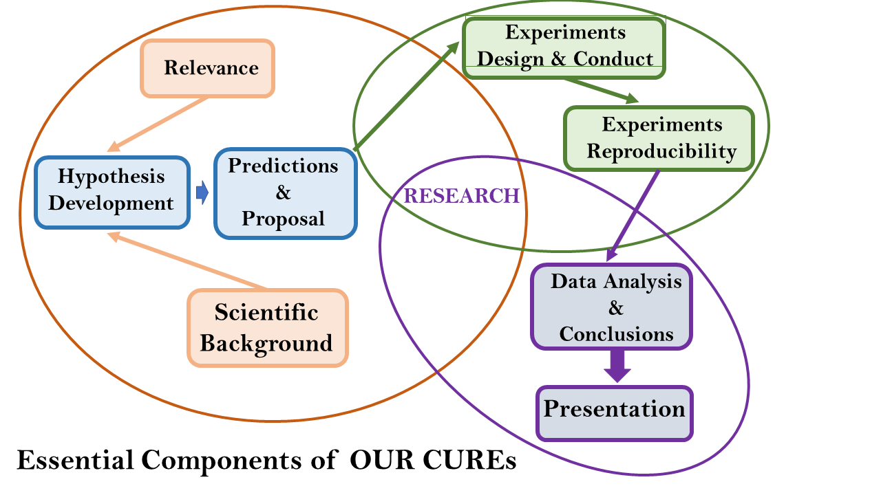 Research, no matter what the field, has nine important elements: OUR CUREs emphasize the incorporation of each of these elements of research into any undergraduate research experience. Eight are drawn from generally accepted components of research with the ninth being Peer Review.