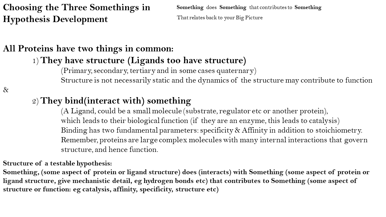 Students are led through Hypothesis and Proposal Preparation using the rule of threes approach: